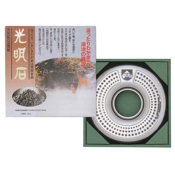 光明石® は天然鉱石でありながら、厚生労働省の医薬部外品(14300DZZ00251000)として認証された、お湯さえあればどこにでも温泉をつくり出すことができる製品です。